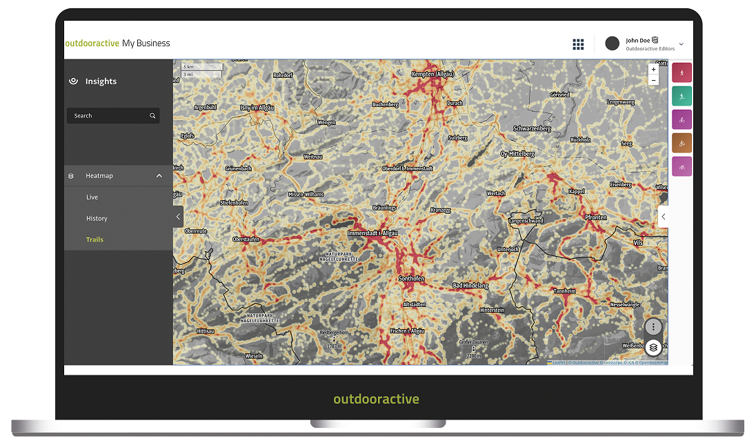 Outdooractive ist die einzige Plattform weltweit, die die B2B- und B2C-Welt in einem System miteinander verbindet. Durch die Spezialisierung auf verschiedene Stakeholder im Tourismus (Business Types), wird jeder Kunde branchenspezifisch und optimal bedient, egal ob Tourismusorganisation, Trail Manager, Hotel oder Guide. Dennoch fließen alle Daten und Workflows in der Outdooractive Plattform zusammen. So entsteht ein digitaler Informationsaustausch zu offiziellen Touren, Community-Inhalten, Trails, aktuellen Bedingungen, Regeln und Mängeln.